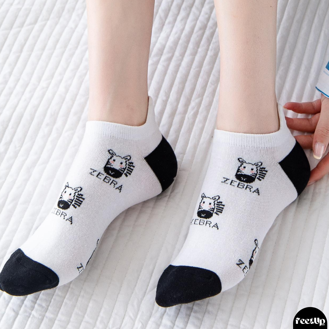 Dale un toque divertido a tu look con este exclusivo pack de medias tobilleras temáticas en blanco y negro.